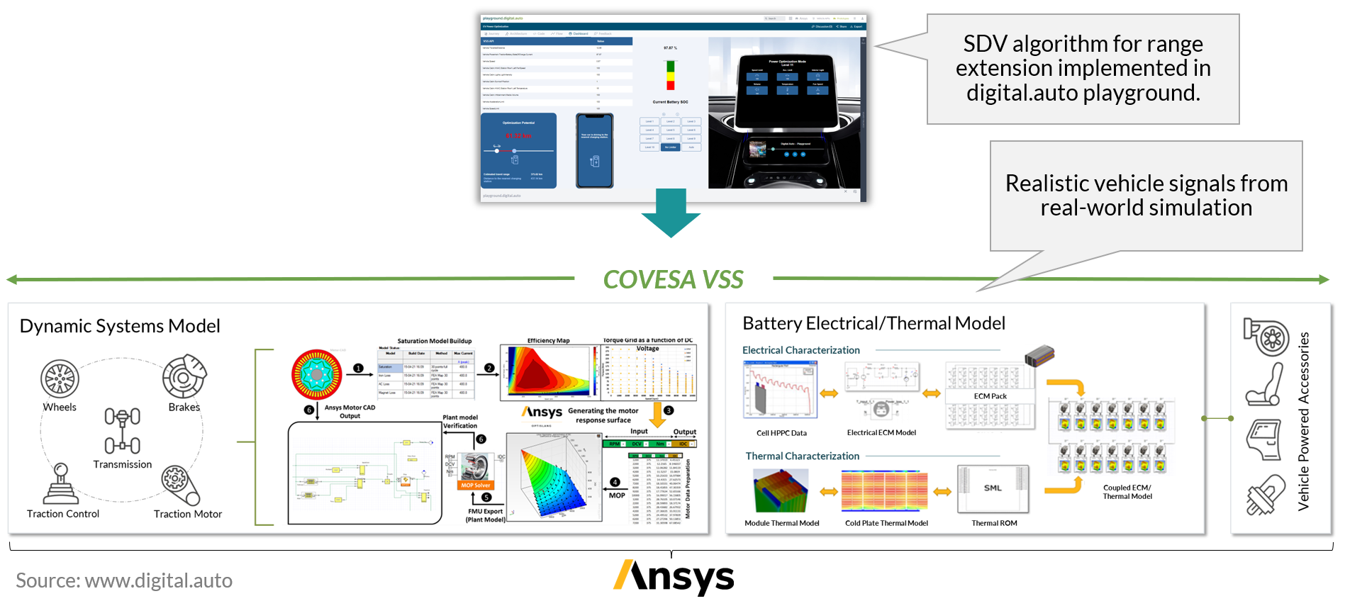 In the next step of the *Range Extension* use case, the basic mock-up data south of the Vehicle Hardware Abstraction Layer (VHAL) is replaced with a more realistic vehicle simulation. This advancement ensures that vehicle behavior below the VHAL is far more accurate, leading to better testing and validation results for the range extension algorithm north of the VHAL.&#x20;