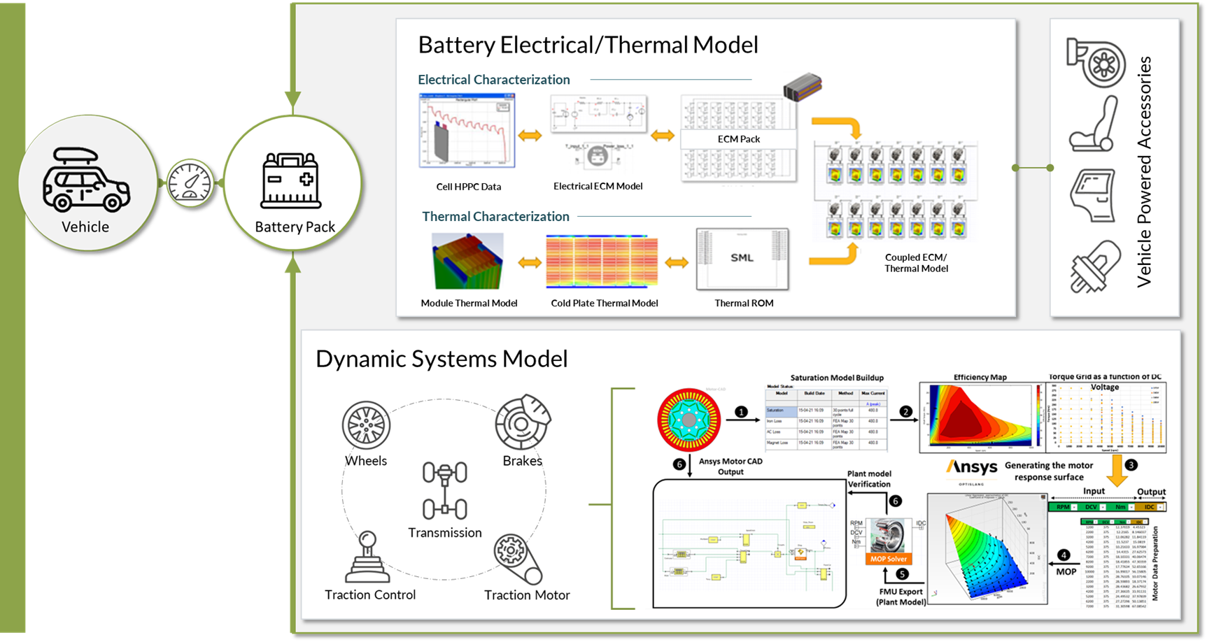 Simulation plays a critical role in modern vehicle development, enabling comprehensive virtual testing across multiple domains to reduce costs and time. Key areas include **Vehicle Dynamics and Performance**, where handling, braking, and aerodynamics are optimized, and **Safety and Crashworthiness**, which tests crash scenarios to validate occupant protection systems. **Environmental Testing** assesses vehicle performance across varying weather, terrain, and altitudes, while **Electrification and Energy Management** models battery range, charging, and energy use.